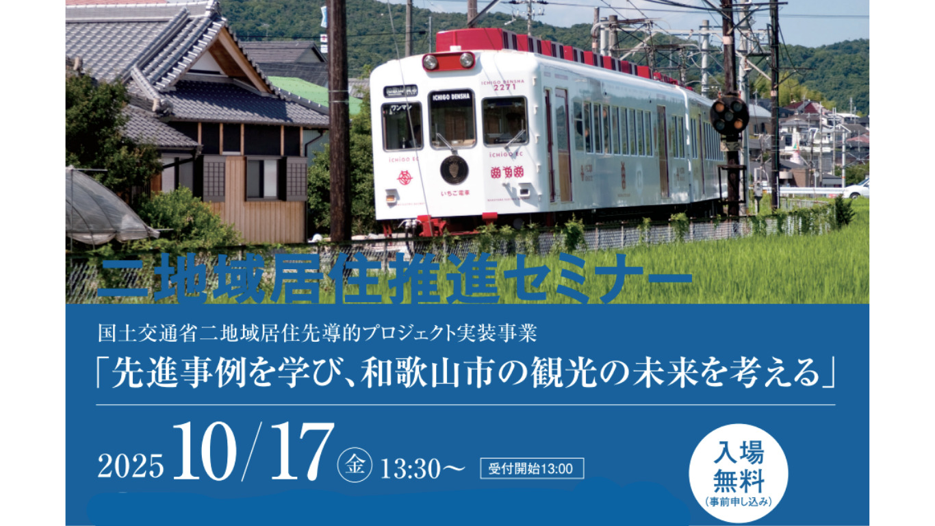 今回は、特に和歌山市での二地域居住と観光をテーマに新たな可能性を考えるセミナーを開催します。先進事例の紹介に加え、ゲストを交えたパネルディスカッションなど盛りだくさんの内容です。